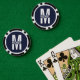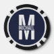 featuring personalised monogram in white bold modern sans serif font style with box of name in the middle of monogram on navy blue background.