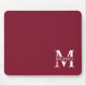 featuring personalised white monogram in classic serif font style with box of name in the middle of monogram on burgundy red background.