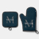 Personalised Monogram and Name Navy Blue Oven Mitt & Pot Holder Set