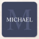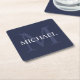 Personalised Monogram and Name Navy Blue Square Paper Coaster
