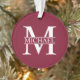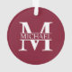 featuring personalised white monogram in classic serif font style with box of name in the middle of monogram on burgundy red background.