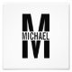 featuring personalised monogram in black bold modern sans serif font style with box of name in the middle of monogram.