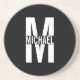 featuring personalised monogram in white bold modern sans serif font style with box of name in the middle of monogram on black background.