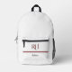 Personalised Monogram and Name White Grey Red Printed Backpack