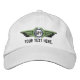 A custom hat detailed embroidered Personalised Monogram Laurels Badge Pilot Wings baseball cap on for any aviation, geocaching, exploration enthusiast. For the air pilot you love or the one in you. Edit the text line field with a name, business, title, or coordinates. Edit the 3 letter monogram field to suit what you want; it is now set as "GPP" for General Private Pilot. You can also email us with your special request or for help with this embroidery as well.