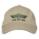 A custom hat detailed embroidered Personalised Monogram Laurels Badge Pilot Wings baseball cap on for any aviation, geocaching, exploration enthusiast. For the air pilot you love or the one in you. Edit the text line field with a name, business, title, or coordinates. Edit the 3 letter monogram field to suit what you want; it is now set as "GPP" for General Private Pilot. You can also email us with your special request or for help with this embroidery as well.