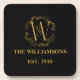 Personalised Monogram Black & Gold Family Initial beverage coaster