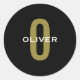 Personalised Monogram Black Gold White Name Classic Round Sticker