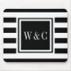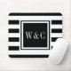 Elegant personalised initials monogram mouse pad featuring a black and white striped pattern with your initials. Designed by Thisisnotme©