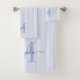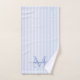 Add a touch of elegance to your bathroom with this personalised monogram bath towel set. Featuring a soft blue and white striped background, each towel is customised with your monogram initial and name in a fancy script font for a timeless, feminine look.