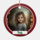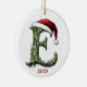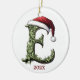 Celebrate the season with a touch of personalised cheer! This round ceramic Christmas ornament is a beautiful addition to your holiday décor, featuring a charming cartoon filigree monogram "E" on the front, decked out in a festive Santa hat and customised with the year to mark the occasion. The back of the ornament adds a heartwarming personal touch, with a classic red border framing a photo of your choice—perfect for commemorating a special moment or loved one. Below the photo, there’s space for a caption, letting you add a meaningful message or a simple holiday greeting. This keepsake ornament is perfect for family, friends, or your own tree, bringing a unique, personalised sparkle to Christmas memories for years to come!
