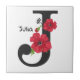 Personalised monogram editable J text red flower Ceramic Tile