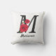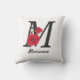 Personalised monogram editable M text red flower floral beige chequered plaid