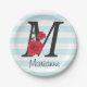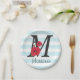 Personalised monogram editable M text red flower floral beige chequered plaid