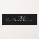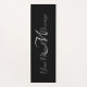 An elegant black fitness mat with dark grey script name/message and white initial. Easily change the message and initial using the Template provided. The back of the mat is white. Dimensions: 72" x 24", and a comfy 0.25" thick. Lightweight: approximately 3lbs. See "About This Product" at side for more information.