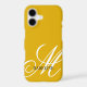 Personalised monogram elegant mustard yellow iPhone 17 case . Elegant script typography in light grey colour. Create your own personalised smartphone cover with luxurious design. Fancy swirly lettering that can be enlarged or made smaller and placed to your liking. You can also change all the colours of the letters and background. Classy monogrammed design for personal use, wedding couple or business. Add your own glamourous logo optionally. Chic blank template with pretty soft tone background image. Beautiful template with luxury style font. Also available for Samsung Galaxy S phones and other popular brands. Decorative phone accessories that can be completely customised with your own print. Change quantity for the best offer sale price.