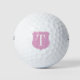 Personalised monogram golf ball gift set for women. Custom golf balls with your name monogram print. Elegant monogram practice golf ball set with stylish typography. Customisable template with personalised name or classy monogrammed initial letters. Chic novelty sports gift idea for golfers, golfing fans, tournaments, golf theme party, golf related wedding or birthday etc. Customisable accessories for sporty men and women. Create a his and hers set for golf lover dad, father, uncle, brother, husband, son, mother, mum, wife, bridesmaid, bride etc. Cool pink shield emblem design printed with your own unique initial or funny quote.