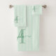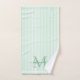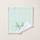 Add a touch of elegance to your bathroom with this personalised monogram bath towel set. Featuring a soft green and white striped background, each towel is customised with your monogram initial and name in a fancy script font for a timeless, feminine look.