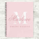 A Personalised Monogram Blush Pink Script Name Notebook for your new home office, administrative and professional work, back to school, artwork sketches, recipe notes etc. Choose from a variety of insert types including wide rule, college rule, and blank for sketching.