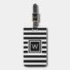 Chic personalised black and white striped luggage tag featuring an elegant black and white bold square initial monogram. The reverse has a black background with classic white text for your contact details. You can personalise the initial and customise the colour to a colour of your choice.
