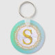 Personalised Monogram Mandala Gold and Blue Key Ring