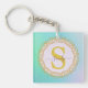 Personalised Monogram Mandala Gold and Blue Key Ring