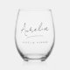 Personalised Monogram Modern Script Signature Name Stemless Wine Glass