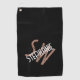 Cool simple modern trendy golf towel customisable personalizable with a name and initials.Original inisex monogram design for you or as a beautiful ,useful and thoughtful gift for a golf lover..Elegant,classy,stylish,black background ,white and brown chocolate typography.