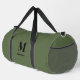 A custom monogram name green duffle bag. Perfect for carrying to the gym, camping, weekend trips, or travelling.