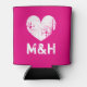 Personalised monogram neon pink wedding can cooler. Cute pink and white beverage holder for wedding party, bridal shower, anniverary etc. Personalise with monogrammed name initials letters of bride and groom / newlyweds couple. Create one for guests too and give them away as wedding favour / souvenir Make your own cosy can coolers with weathered heart symbol. Perfect for beer and other cold drinks. Customisable background colour. Change the quantity to get the cheapest price per can cooler. Also available for alcoholic drinking bottles. Vintage rustic typography. Romance theme design.