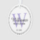 Personalised Monogram Newlywed Lavender Milgrain Acrylic Christmas Ornament. The dotted border is reminiscent of milgrain, which is a jewellery-detailing technique often used for engagement and wedding rings. The milgrain border adds both a modern and elegant style to this ornament.