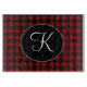 Single Script Monogram Red and Black Buffalo Plaid Cutting Board