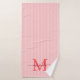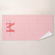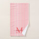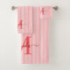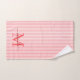 Add a touch of elegance to your bathroom with this personalised monogram bath towel set. Featuring a soft red and white striped background, each towel is customised with your monogram initial and name in a fancy script font for a timeless, feminine look.