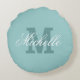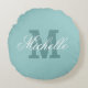 Personalised name monogram round Teal blue / turquoise zipper throw pillow. Feminine design with monogrammed initial letter. Elegant chic home decor for sofa couch bed chair car etc. Cute gift idea for Mother's Day or Birthday!
