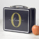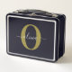 Personalised Monogram Script Name Black White Gold Metal Lunch Box