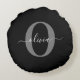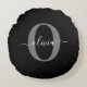 Personalised Monogram Script Name Black White Grey Round Cushion