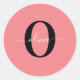 Personalised Monogram Script Name Black White Pink Classic Round Sticker