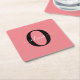 Personalised Monogram Script Name Black White Pink Square Paper Coaster