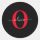 Personalised Monogram Script Name Black White Red Classic Round Sticker