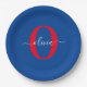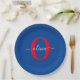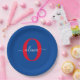 Personalised Monogram Script Name Blue White Red Paper Plate