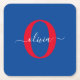 Personalised Monogram Script Name Blue White Red Square Paper Coaster