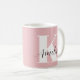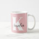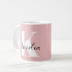 Personalised pink mug featuring your monogram initial in modern large white typography and your name in a stylish calligraphy signature script.