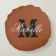 Personalised monogram sienna brown round throw cushion