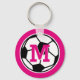 Personalised monogram soccer mascot keychains for girls. Make your own monogrammed keychain for kids coach, players and fans. Add your name initial letter. Customisable colour ie girly NEON PINK. Cute favour for sports themed Birthday party.