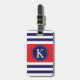 Personalised Monogram Stripes Pattern Navy Red Luggage Tag