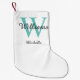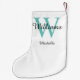 Personalised Monogram Teal Green Small Christmas Stocking. Add a festive touch to your holiday mantle with this double-sided personalised Monogram Teal Green Christmas Stocking. Personalise with your initial, last name, and first name.