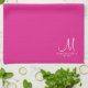 Custom Upload Add Your Photo Design or Logo Text Elegant Modern Cute Personalised Monogram Initial Name / Family Name Template Trendy Pink Kitchen Towel.
