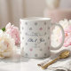 Featuring a soft pink & grey polka dot design, these coffee mugs can be customised with initials for a unique keepsake. Ideal for weddings, bridal showers, engagement parties, or rehearsal dinners, they complement pastel, modern, or floral themes.
