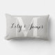Elegant and stylish light grey monogram lumbar pillow. This trendy pillow features dark grey writing with a light grey background and a large white monogram initial. You can personalise it with your names and monogram initial, and even change the text colour and font style using the customise option. This pillow is a lovely keepsake and will make a perfect wedding, newlywed or anniversary gift!