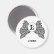 Your name and your monogram can be put on this magnet. There is an "L" that you can change to whatever letter you would like it to be, and the name "Lynne" that you can change to your name. Has an image of "penned" look angel wings with the letter in the centre. White background. Want your own look you can customise. Choose your shape and size.